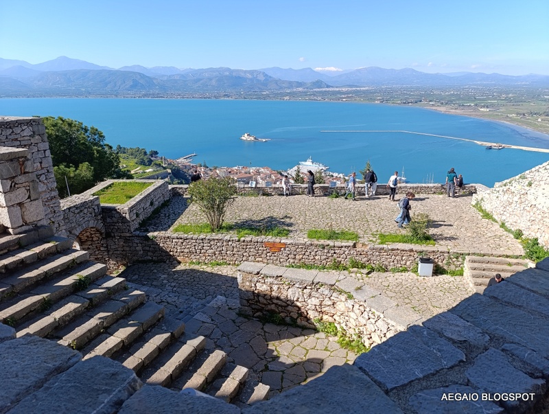 Από εδώ ψηλά, το Ναύπλιο απλώνεται σαν ζωγραφιά. Το γαλάζιο του Αργολικού κόλπου αγκαλιάζει την πόλη, τα καράβια στέκουν ήρεμα στο λιμάνι και το Μπούρτζι μοιάζει να επιπλέει στο φως. Κι όμως, για τον Θεόδωρο Κολοκοτρώνη, αυτή η θέα δεν ήταν ελευθερία. Ήταν υπενθύμιση.